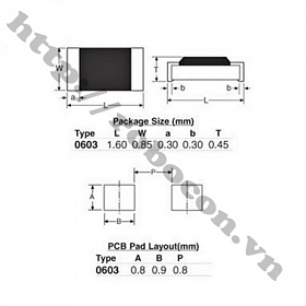 - Điện trở dán 0603 10K Ohm 1% được đóng gói theo chuẩn 0603 có kích thước nhỏ chỉ 1.6x0.8x0.4mm. Nhiệt độ hoạt động từ -55oC đến 155oC và dải điện áp rộng thích hợp với nhiều mạch điện tử cần độ chính xác, hoạt động ổn định, bền với thời gian.