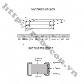 - Kích thước: 3.2x1.6x0.9mm