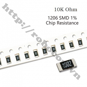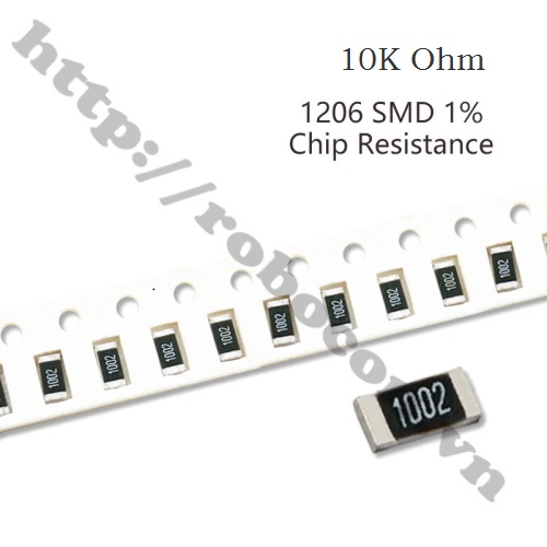 - Điện trở dán 1206 10K Ohm thuộc nhóm linh kiện điện tử thụ động đặc trưng cho sự cản trở dòng điện. Điện trở dán 1206 10k Ohm là loại điện trở có giá trị cố định có dung sai rất nhỏ 1%, và chất lượng cao (nhiễu nhiệt nhỏ, đặc tính tần cao).