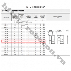 - Điện trở nhiệt NTC 10D-13 là một nghịch nhiệt trở, trở kháng của điện trở giảm khi nhiệt độ tăng., có thể hoạt động trong môi trường nhiệt độ cao và độ ẩm, cảm ứng nhiệt nhanh, độ nhạy cao, vững chắc, thuận tiện cho việc lắp ráp tự động.