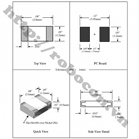 Kích thước điện trở dán 0805 240 Ohm 1%