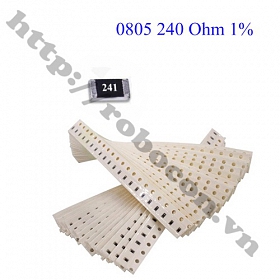 - Điện trở dán 0805 240 Ohm thuộc nhóm linh kiện điện tử thụ động đặc trưng cho sự cản trở dòng điện. Điện trở dán 0805 240 Ohm là loại điện trở có giá trị cố định có dung sai rất nhỏ 1%, và chất lượng cao (nhiễu nhiệt nhỏ, đặc tính tần cao).