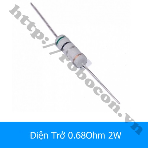 - Điện trở 0.68Ohm 2W được sản xuất theo công nghệ Metal film với sai số thấp chỉ 5%. Điện trở 0.68ohm 2w có cấu tạo màng kim loại phù hợp với các mạch điện tử cần độ chính xác, hoạt động ổn định, bền với thời gian. Trên thân của điện trở 0.68R 2W có những vạch màu thể hiện giá trị của điện trở theo quy chuẩn thế giới để người dùng có thế dễ dàng lựa chọn điện trở phù hợp.