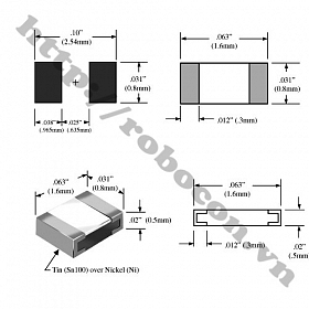 - Điện trở dán 0603 1K Ohm thuộc nhóm linh kiện điện tử thụ động đặc trưng cho sự cản trở dòng điện. Điện trở dán 0603 1k Ohm là loại điện trở có giá trị cố định có dung sai rất nhỏ 1%, và chất lượng cao (nhiễu nhiệt nhỏ, đặc tính tần cao).