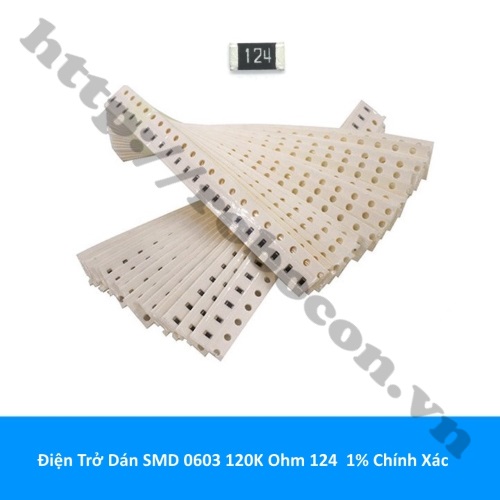 - Điện trở dán 0603 120k Ohm 124 1% chính xác thuộc nhóm linh kiện điện tử thụ động đặc trưng cho sự cản trở dòng điện. Điện trở dán 0603 120k Ohm là loại điện trở có giá trị cố định có dung sai rất nhỏ 1%, và chất lượng cao (nhiễu nhiệt nhỏ, đặc tính tần cao).