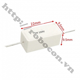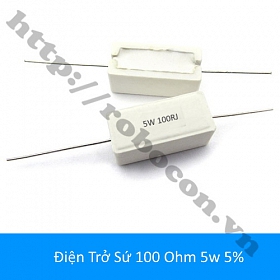 - Điện trở sứ 100 Ohm 5W có công suất lớn, kích thước lớn hơn điện trở thường nên giá trị điện trở được ghi trực tiếp trên thân của điện trở. Điện trở công suất là các điện trở dùng trong các mạch điện tử có dòng điện lớn đi qua.