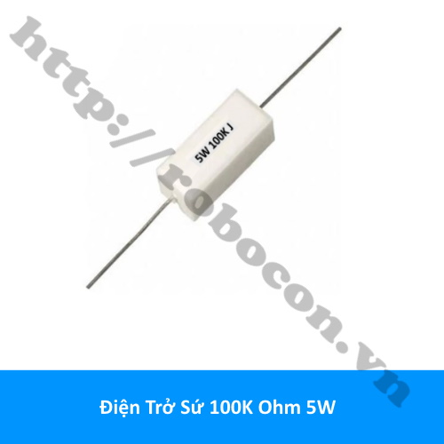 - Trở sứ, điện trở gốm là cách gọi khác của các điện trở công suất, khi hoạt động điện trở này toả nhiệt nên điện trở phải được bọc trong vỏ sứ. Điện trở sứ 100K 5W có công suất lớn, hiệu suất ổn định, nhiệt độ hoạt động cao phù hợp với các mạch điện có dòng điện lớn, công suất tiêu thụ lớn.