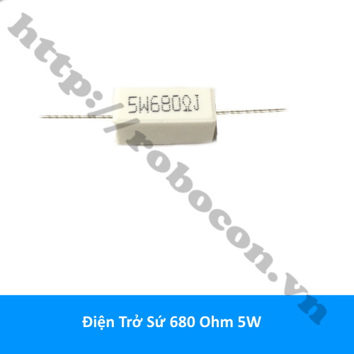 - Điện trở sứ 680 Ohm 5W có công suất lớn, kích thước lớn hơn điện trở thường nên giá trị điện trở được ghi trực tiếp trên thân của điện trở. Điện trở công suất là các điện trở dùng trong các mạch điện tử có dòng điện lớn đi qua.
