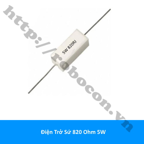 - Điện trở sứ 820 Ohm 5W có công suất lớn, kích thước lớn hơn điện trở thường nên giá trị điện trở được ghi trực tiếp trên thân của điện trở. Điện trở công suất là các điện trở dùng trong các mạch điện tử có dòng điện lớn đi qua.