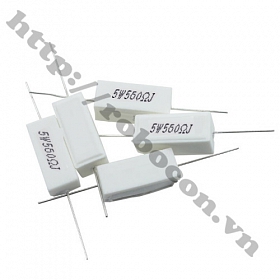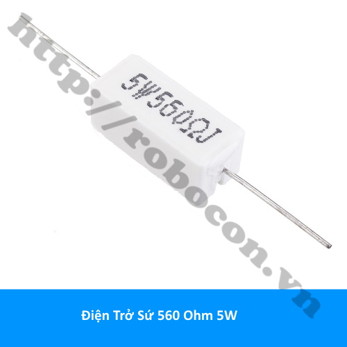 - Điện trở sứ 560 Ohm 5W có công suất lớn, kích thước lớn hơn điện trở thường nên giá trị điện trở được ghi trực tiếp trên thân của điện trở. Điện trở công suất là các điện trở dùng trong các mạch điện tử có dòng điện lớn đi qua.
