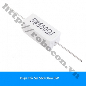 - Trở sứ, điện trở gốm là cách gọi khác của các điện trở công suất, khi hoạt động điện trở này toả nhiệt nên điện trở phải được bọc trong vỏ sứ. Điện trở sứ 560R 5W sai số 5% có công suất lớn, hiệu suất ổn định, nhiệt độ hoạt động cao phù hợp với các mạch điện có dòng điện lớn, công suất tiêu thụ lớn.