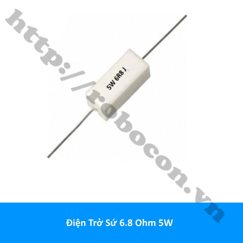 - Điện trở sứ 6.8 Ohm 5W có công suất lớn, kích thước lớn hơn điện trở thường nên giá trị điện trở được ghi trực tiếp trên thân của điện trở. Điện trở công suất là các điện trở dùng trong các mạch điện tử có dòng điện lớn đi qua.