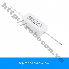 - Điện trở sứ 5.6 Ohm 5W có công suất lớn, kích thước lớn hơn điện trở thường nên giá trị điện trở được ghi trực tiếp trên thân của điện trở. Điện trở công suất là các điện trở dùng trong các mạch điện tử có dòng điện lớn đi qua.