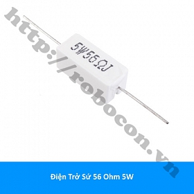 - Điện trở sứ 56 Ohm 5W có công suất lớn, kích thước lớn hơn điện trở thường nên giá trị điện trở được ghi trực tiếp trên thân của điện trở. Điện trở công suất là các điện trở dùng trong các mạch điện tử có dòng điện lớn đi qua.