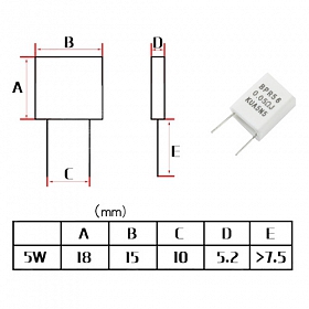 Kích Thước Điện Trở Sứ KUA5N5 BPR56 0.05 OHM 0.05R 5W 5% Chân Đứng