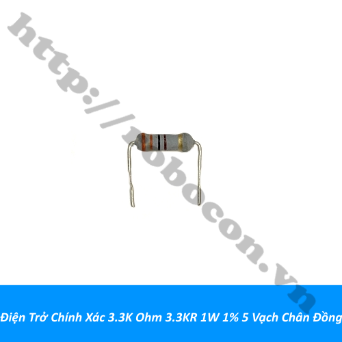 - Điện trở chính xác 3.3k ohm 3.3kr 1w 1% 5 vạch chân đồng hay trở cắm có giá trị trở kháng cố định được sản xuất theo chuẩn có sai số rất nhỏ chỉ 1%, hiệu suất làm việc ổn định, nhiễu nhiệt nhỏ, đặc tính tần cao.