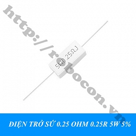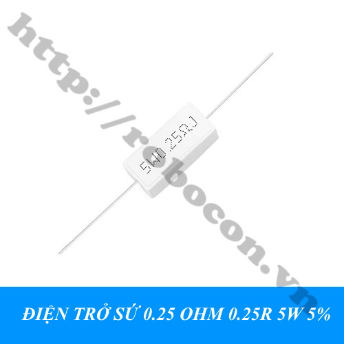 - Điện trở sứ 0.25 Ohm 5W có công suất lớn, kích thước lớn hơn điện trở thường nên giá trị điện trở được ghi trực tiếp trên thân của điện trở. Điện trở công suất là các điện trở dùng trong các mạch điện tử có dòng điện lớn đi qua.