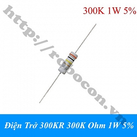 - Điện trở cắm 1W 300K OHM 300KR 5% được sản xuất theo công nghệ Cacbon film với sai số thấp chỉ 5%. Điện trở phim 1W 300k OHM có cấu tạo màng kim loại phù hợp với các mạch điện tử cần độ chính xác, hoạt động ổn định, bền với thời gian. Trên thân của điện trở chính xác 300kR 1W có những vạch màu thể hiện giá trị của điện trở theo quy chuẩn thế giới để người dùng có thế dễ dàng lựa chọn điện trở phù hợp.