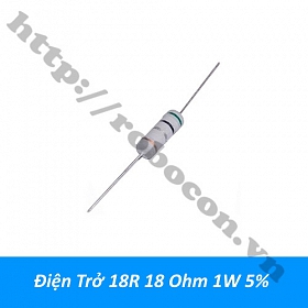 - Điện trở cắm 1W 18R OHM 18R 5% được sản xuất theo công nghệ Cacbon film với sai số thấp chỉ 5%. Điện trở phim 1W 18R OHM có cấu tạo màng kim loại phù hợp với các mạch điện tử cần độ chính xác, hoạt động ổn định, bền với thời gian. Trên thân của điện trở chính xác 18R 1W có những vạch màu thể hiện giá trị của điện trở theo quy chuẩn thế giới để người dùng có thế dễ dàng lựa chọn điện trở phù hợp.