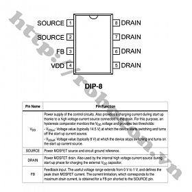 - Chân FB: Chân feedback , đầu vào tín hiệu của chân này là tín hiệu dòng điện cảm ứng từ cuộn dây phụ bên sơ cấp. Dòng điện này kết hợp với dòng Is của mosfet bên trong VIPER12A, tạo ra điện áp để so sánh với điện áp chuẩn, đưa ra tín hiệu đóng cắt, điều chỉnh tần số đóng cắt Mosfet.