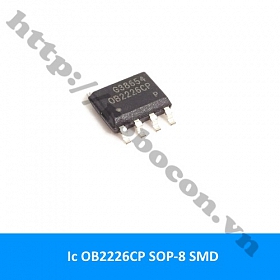 - Ic dán OB2226CP 8 chân là một ic quản lý, điều khiển, phân phối, và cung cấp điện áp nguồn đến các mạch và các ic khác, dùng để chuyển đổi, điều chỉnh, ổn định dòng điện và điện áp đi qua nó, được sử dụng hầu hết trong các mạch nguồn trên bo điện tử như: điều hòa, tủ lạnh ,tivi, máy giặt, bếp từ, DVD, nồi cơm, đầu kỹ thuật số, đèn led.