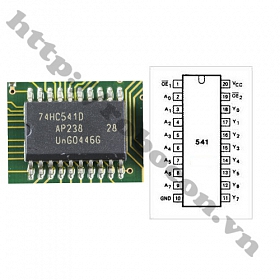 - Chức năng: Đệm dữ liệu 2 chiều, thường ứng dụng trong các mạch sử dụng led như quét led matrix, led 7, hoặc đệm dữ liệu trên bus với các mạch sử dụng nhiều linh kiện mắc song song.