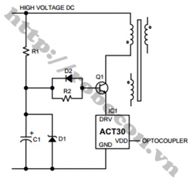 - IC ACT30BHT cho tần số xung chuyển mạch từ 65KHz - 100KHz với cường độ dòng điện từ 400mA-800mA IC chỉ tiêu thụ 0.15W ở chế độ chờ, IC có cơ chế bảo vệ điện áp thấp, bảo vệ quá dòng.