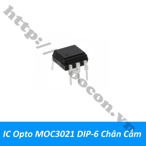 - IC Opto MOC3021 DIP-6 chân cắm là một linh kiện quang điện tử chuyên dùng để truyền tín hiệu điều khiển giữa hai mạch điện có sự chênh lệch cao về điện áp thông qua ánh sáng mà không cần trực tiếp truyền dẫn với nhau bằng tín hiệu điện.