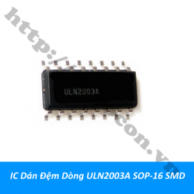 - IC dán đệm dòng ULN2003A SOP-16 SMD là một vi mạch đệm, còn được gọi ic chip, bản chất cấu tạo là các mảng darlington chịu được dòng điện lớn và điện áp cao, trong đó có chứa 7 cặp transistor NPN ghép darlington cực góp hở với cực phát chung. Mỗi kênh của ULN 2003 có một diode chặn có thể sử dụng trong trường hợp tải có tính cảm ứng, ví dụ như các relay.