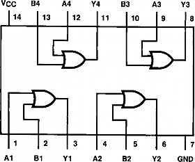 Cấu tạo bên trong IC 74HC32 có bốn cổng logic OR, mỗi cổng có 2 ngõ vào và 1 ngõ ra. IC 74HC32 được sản xuất theo công nghệ Cmos, là một mạch tích hợp được xây dựng từ các Mosfet và một số điện trở phụ trợ.