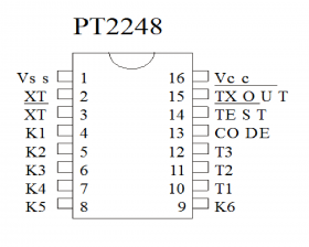 IC PT2248 được chế tạo bằng công nghệ CMOS, tiêu thụ điện năng thấp, có khả năng miễn nhiễm tiếng ồn rất cao. IC đáp ứng đầu ra cho các xung đơn, giữ xung và xung cyclic phù hợp với nhiều ứng dụng khác nhau. Mã hóa các phím được lắp theo kiểu ma trận.
