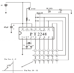 IC PT2248 là con điều khiển phát tín hiệu hồng ngoại với đầu ra có 18 chức năng, có nghĩa là nó phát được 18 kênh với mã hóa khác nhau. PT2248 làm việc được với điện áp từ 2.2V đến 5V và được ứng dụng nhiều trong các thiết bị điều khiển từ xa với khoảng cách ngắn. IC PT2248 kết hợp với PT2249A tạo thành một cặp IC mã hóa chuyên dụng trong thu phát tín hiệu hồng ngoại.