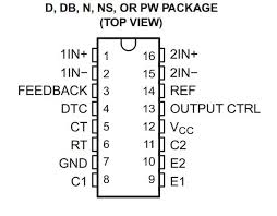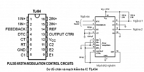 IC TL494 là loại IC tạo được Xung dao động Switching có 2 Phase (nghịch đảo trạng thái nhau) qua 2 Transistor xuất dao động là Q1 và Q2. Tín hiệu dao động được xuất trực tiếp thông qua các Transistor Q1 và Q2 bên trong IC TL494 có thể đạt được 500mA cho mỗi lối ra và điện áp cung cấp cho IC nói chung cũng như cho mỗi cổng ra lên tới 40V.