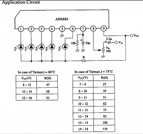 IC AN6884 là mạch tích hợp điều khiển 5 mức tín hiệu led, kết hợp hiệu chỉnh hệ số khuếch đại bằng biến trở đầu vào.