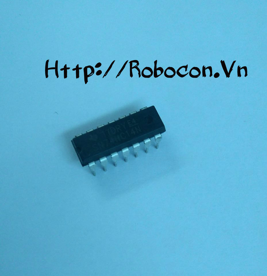 IC 74HC14 là loại ic chuyển mạch trigger, tức là chỉ chuyển trạng thái khi điện áp vượt ngưỡng điện áp cho phép. Bản chất bên trong IC 74HC14 có 6 con opamp được mắc sẵn theo kiểu Schmitt trigger với mục đích lọc nhiễu tín hiệu đầu vào. Người dùng chỉ việc cấp tín hiệu đầu vào và đầu ra có được tín hiệu đảo loại được tạp nhiễu rất tốt. Ví dụ nếu bạn cấp 0V đầu vào thì đầu ra là 5V, cấp 5V đầu vào thì đầu ra là 0V, nếu cấp 3.5V đầu vào để giả lập cho tín hiệu nhiễu thì đầu ra vẫn 5V tùy vào tính toán hoặc theo hysteric mặc định của nó.