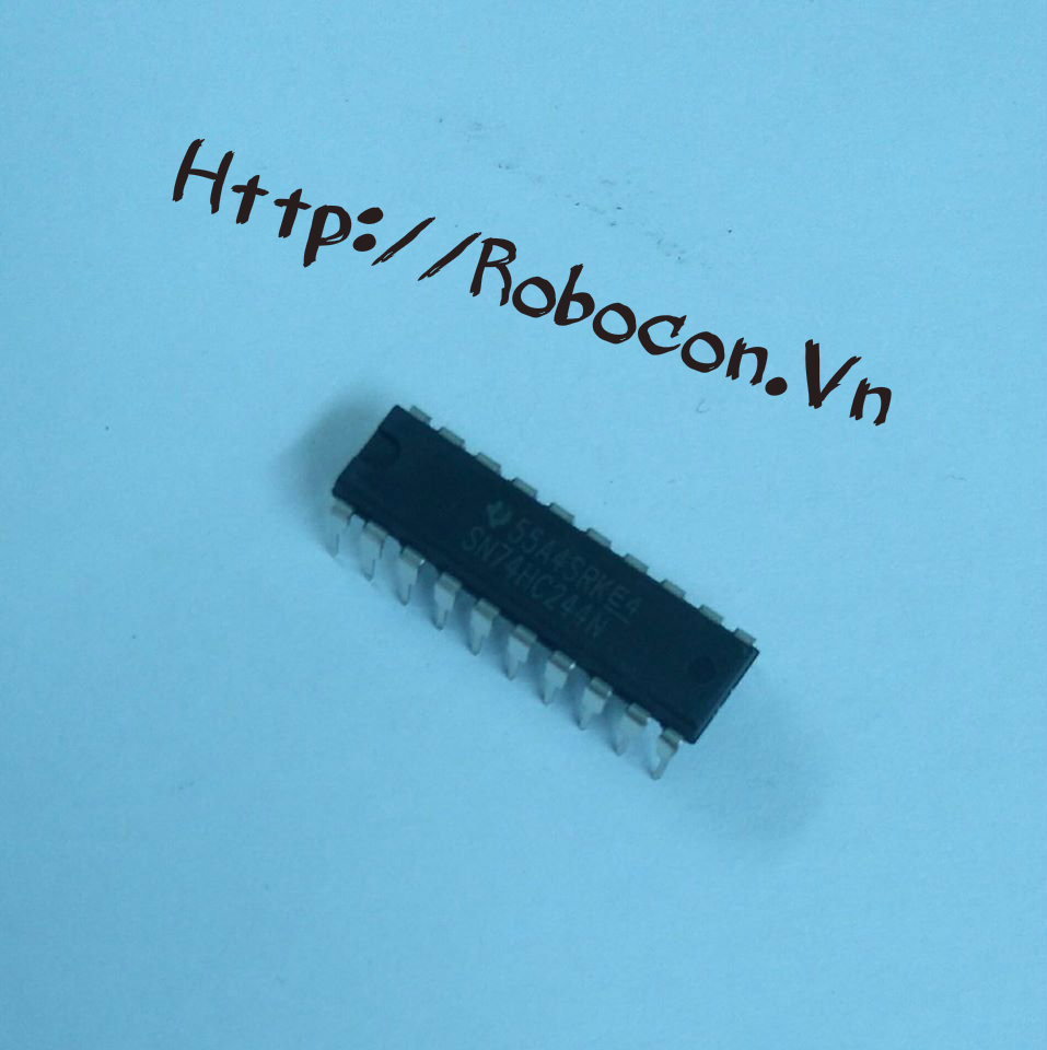 IC 74HC244 là IC đệm 1 chiều, 3 trạng thái. IC 74HC244 được sử dụng để đệm dòng điều khiển hàng nhận từ mạch xử lý trung tâm, đảm bảo dòng kích cho các transitor. IC 74HC244 có thể hoạt động được khi điện áp nguồn cấp cho IC (Vcc): -0.5V - +7.0V. IC 74HC244 có dòng đầu vào ở mỗi chân: 20mA, dòng đầu ra ở mỗi chân: 35mA.