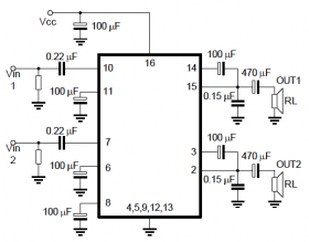 IC TEA2025B này cũng tỏa nhiệt nhưng ít thôi, bạn chỉ cần dùng cánh tản nhiệt loại nhỏ hoặc 1 miếng nhôm để tản nhiệt là đủ. IC TEA2025B có điện áp hoạt động từ 3 --> 15V, tốt nhất là 9V.
