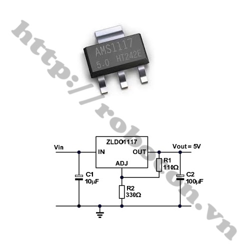 - Ic AMS1117 5v là ic chuyên dụng để ổn định điện áp tuyến tính với sụt áp thấp được dùng trong mạch điện tử.