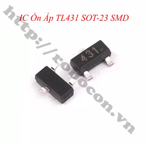 - IC ổn áp chân dán TL431 SOT-23 SMD là mạch so sánh điện áp dùng OPAMP có thể lập trình được, với sự đảm bảo ổn định nhiệt độ trên phạm vi toàn bộ dải nhiệt độ làm việc. Điện áp đầu ra được thiết lập ở giá trị bất kỳ trong khoảng 2.5V đến 36V với hai điện trở bên ngoài.