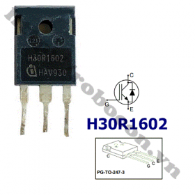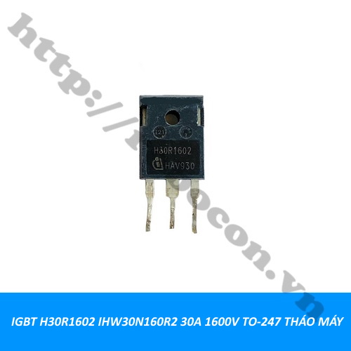 - IGBT H30R1602 IHW30N160R2 30A 1600V TO-247 tháo máy là linh kiện điện tử bán dẫn công suất 3 cực, là một trong những transistor kích xung điều khiển rất quan trọng sử dụng trong bếp từ. Nhờ vào cấu tạo đặc biệt giúp H30R1602 có khả năng đóng cắt nhanh như một mosfet, vừa có công suất chịu tải lớn như một transistor thường.
