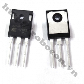 - H25R1203 IGBT 25A 1200V T0-247 là linh kiện điện tử bán dẫn công suất 3 cực, Là một trong những transistor kích xung điều khiển rất quan trọng sử dụng trong bếp từ. Nhờ vào cấu tạo đặc biệt giúp H25R1203 có khả năng đóng cắt nhanh như một Mosfet, vừa có công suất chịu tải lớn như một transistor thường.