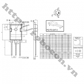 KÍCH THƯỚC VÀ SƠ ĐỒ CHÂN IGBT H25R1203 BẾP TỪ 25A 1200V CHÂN CẮM