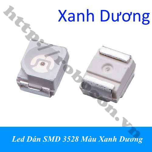 - Led dán smd 3528 màu xanh dương với bước sóng màu là 460-475nm. Led dán 3528 màu xanh dương có kích thước nhỏ, sâu ánh sáng thấp và tuổi thọ dài.