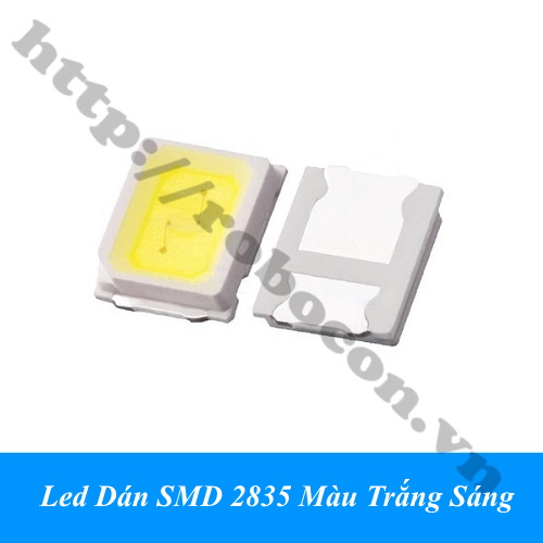 - Led dán smd 2835 màu trắng sáng với bước sóng màu là 460-475nm. Led dán 2835 có kích thước nhỏ, sâu ánh sáng thấp và tuổi thọ dài.