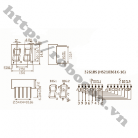 - Led 7 thanh 3261BS 0.36 inch 2 số màu đỏ anode chung 10 chân là 1 linh kiện rất phổ dụng, được dùng như là 1 công cụ hiển thị đơn giản nhất.