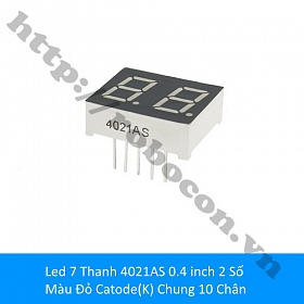 - Led 7 thanh 4021AS 0.4 inch 2 số màu đỏ K chung 10 chân là 1 linh kiện rất phổ dụng, được dùng như là 1 công cụ hiển thị đơn giản nhất.
