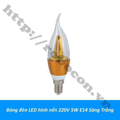LED193 Bóng Đèn LED Hình Nến 220V 5W E14 Sáng Trắng