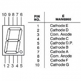 Đối với loại Anode chung: Chân 3 và 8 là 2 chân Vcc (nối ngắn mạch lại với nhau, sau đó nối chung với chân anode của 8 led đơn), vậy muốn led nào đó sáng thì chỉ việc nối chân catot xuống mass. Điện áp giữa Vcc và mass phải lớn hơn 1.3V mới cung cấp đủ led sáng, tuy nhiên không được cao quá 3V.