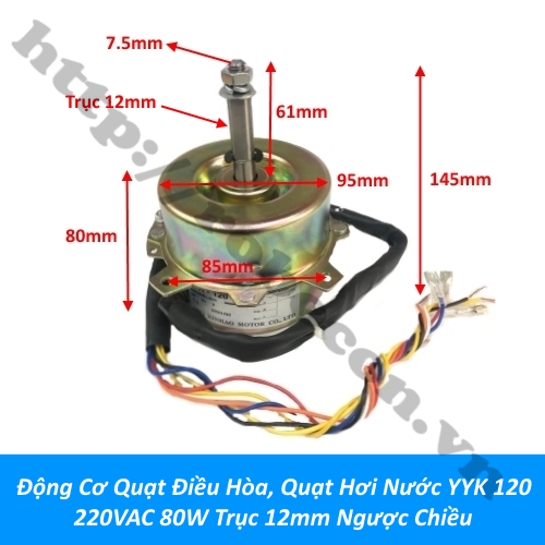 - Động cơ quạt, củ quạt điều hòa, quạt hơi nước YYK 120 220VAC 80W trục 12mm là đầu quạt sử dụng để chế, thay thế, sửa chữa lắp cho các loại quạt hơi nước, quạt điều hòa chạy điện 220V.