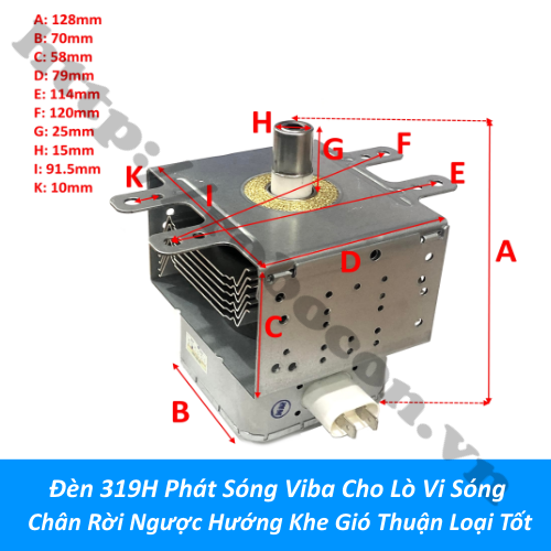 - Đèn phát sóng viba cho lò vi sóng chân rời ngược hướng khe gió thuận loại tốt, bóng nướng hay còn gọi là đèn phát sóng Magnetron là linh kiện có thể nói là quan trọng nhất ngang với 1 chiếc biến áp lò vi sóng trong mỗi chiếc lò vi sóng.